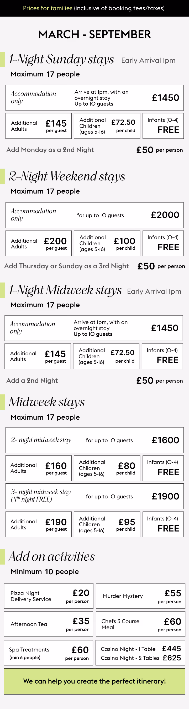 Share your thoughts, and we’ll refine everything until it feels just right - including bespoke activity combinations and updated quotes.