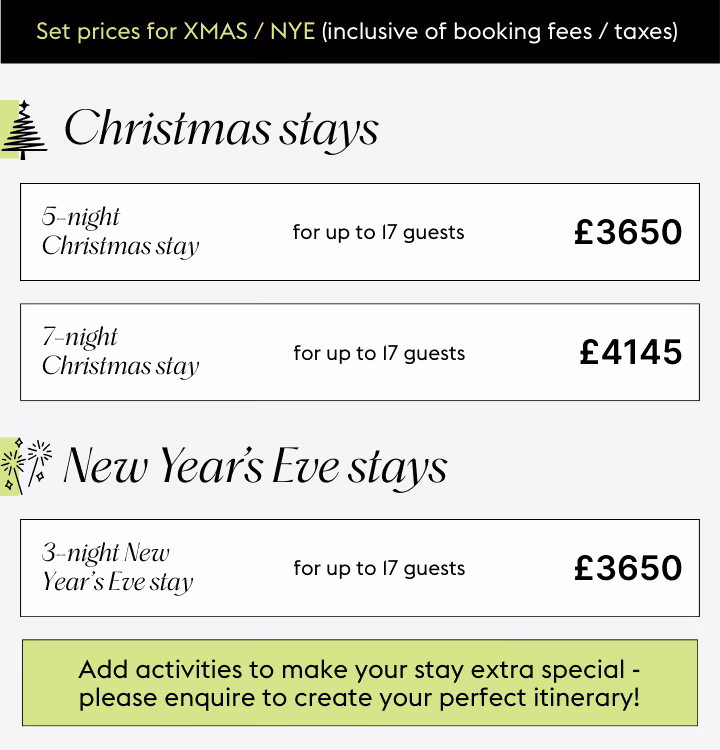 Your balance is due 12 weeks before arrival - for any last-minute bookings, we’ll help where possible with the due date.