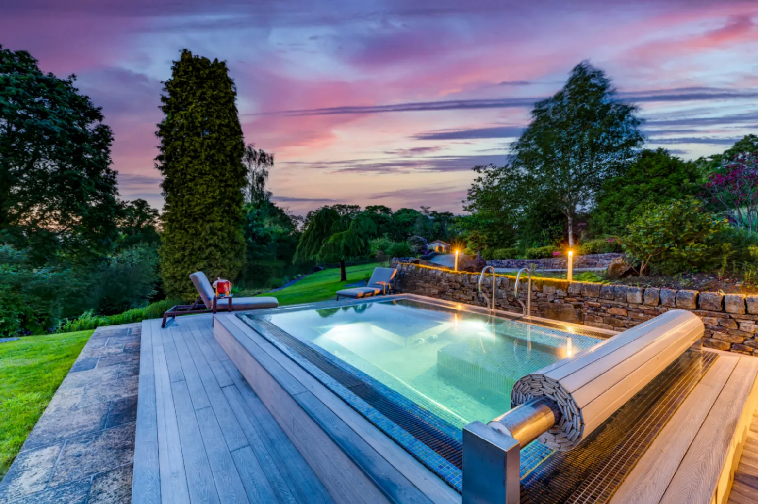 5 x bathrooms (including 2 x ensuites), plus shower + WC next to hot tub on ground floor