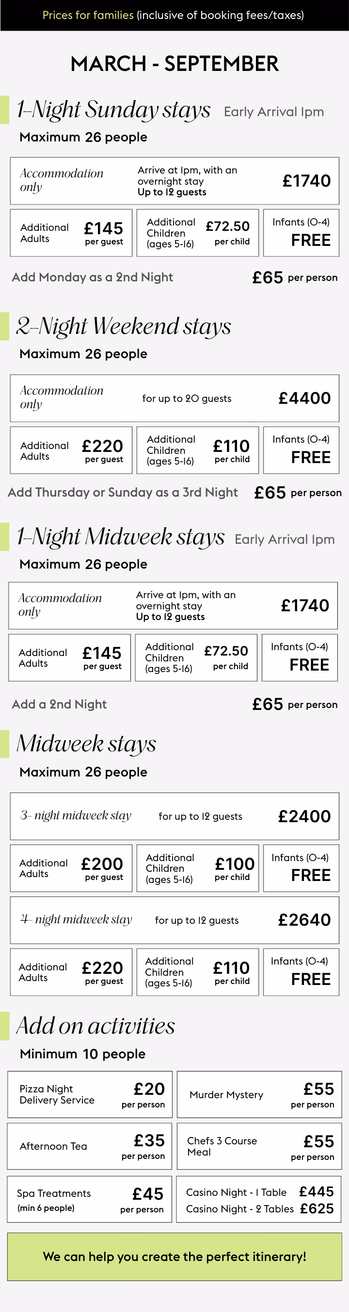 Share your thoughts, and we’ll refine everything until it feels just right - including bespoke activity combinations and updated quotes.