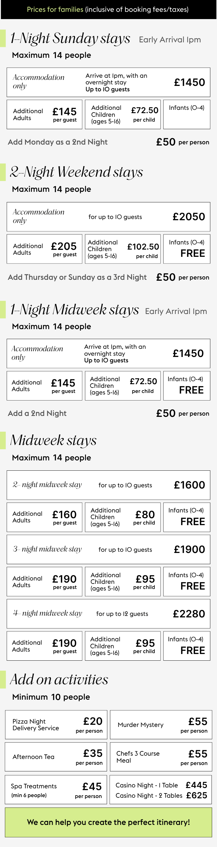 Share your thoughts, and we’ll refine everything until it feels just right - including bespoke activity combinations and updated quotes.