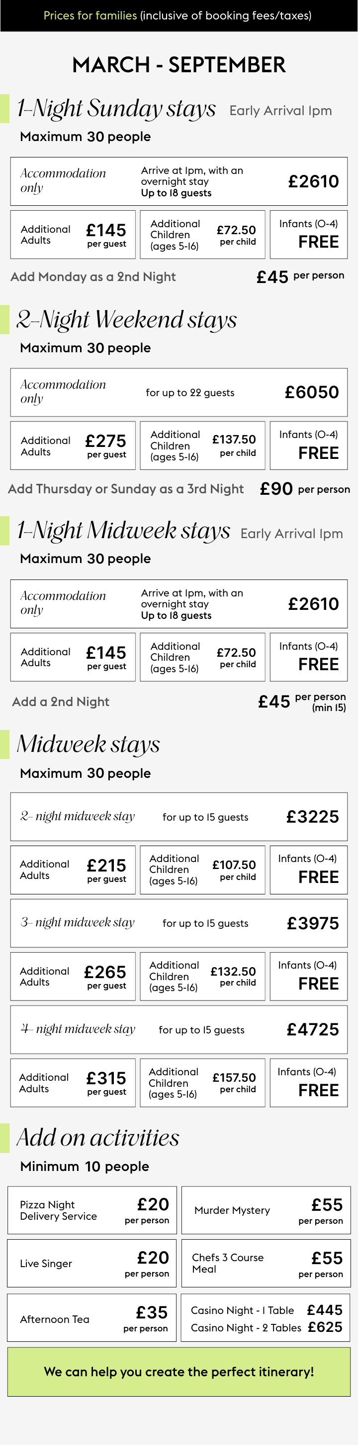 Share your thoughts, and we’ll refine everything until it feels just right - including bespoke activity combinations and updated quotes.