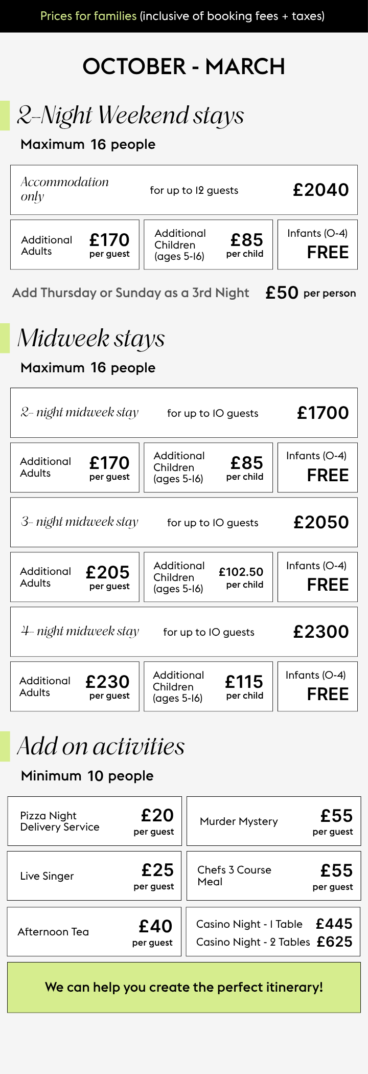 Your balance is due 12 weeks before arrival - for any last-minute bookings, we’ll help where possible with the due date.
