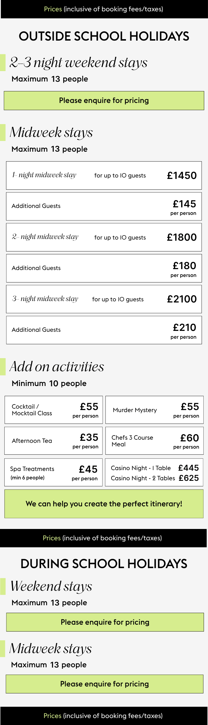 Your Sales & Celebration Consultant will come back to you with approx. 3 tailored property options with recommended activities that suit your group and celebration style.