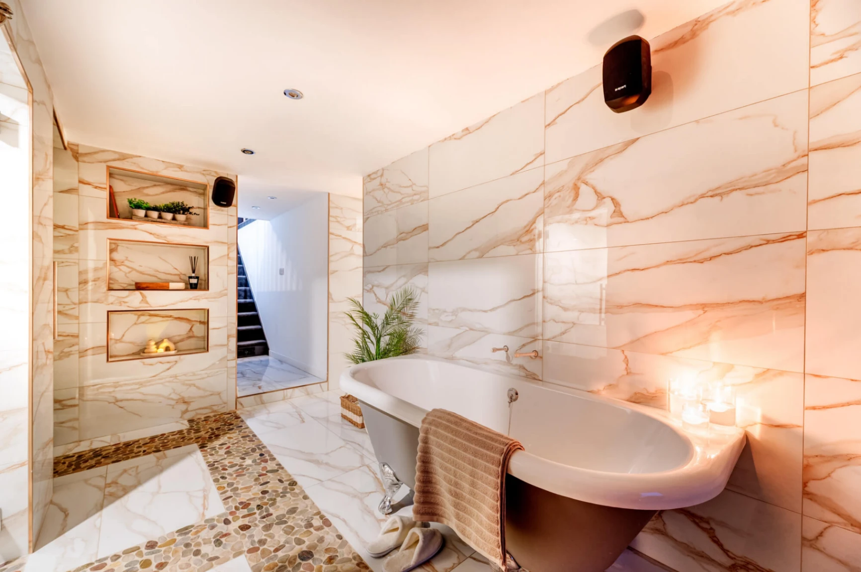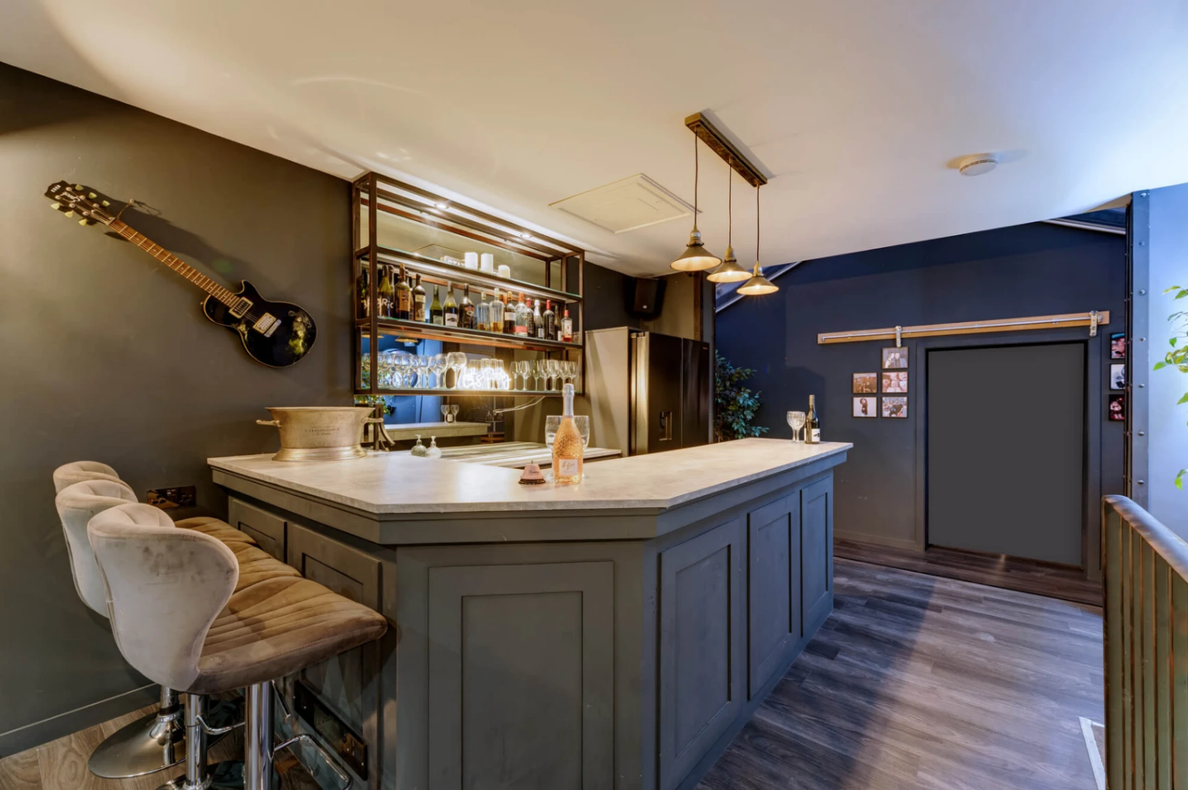 4 x bathrooms (2 x ensuites, shared bathroom on ground floor, family bathroom on first floor, plus WC on lower ground floor in spa area)
