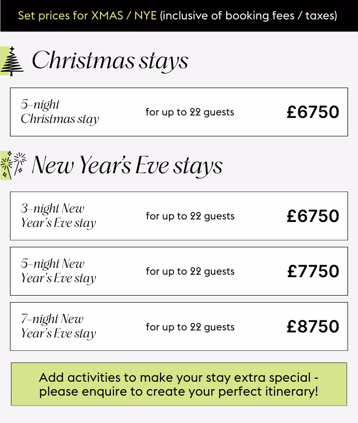 Your balance is due 12 weeks before arrival - for any last-minute bookings, we’ll help where possible with the due date.