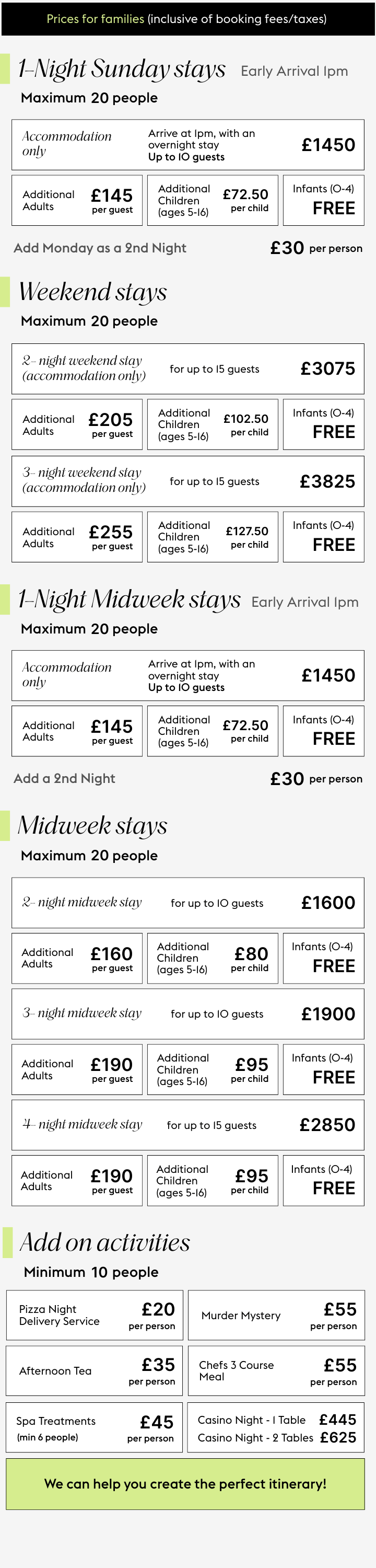 Your Sales & Celebration Consultant will come back to you with approx. 3 tailored property options with recommended activities that suit your group and celebration style.