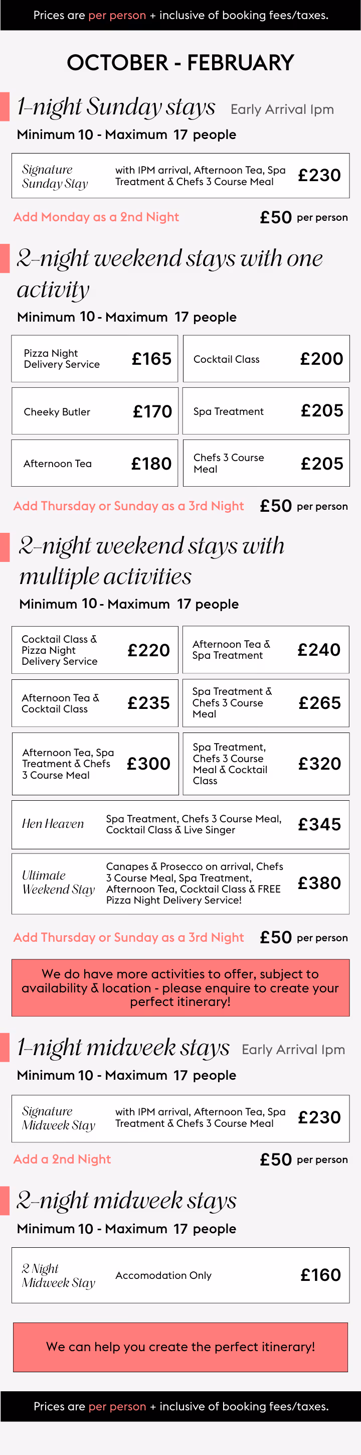 Share your thoughts, and we’ll refine everything until it feels just right - including bespoke activity combinations and updated quotes.
