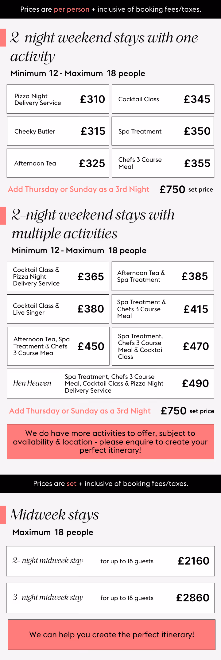 Share your thoughts, and we’ll refine everything until it feels just right - including bespoke activity combinations and updated quotes.
