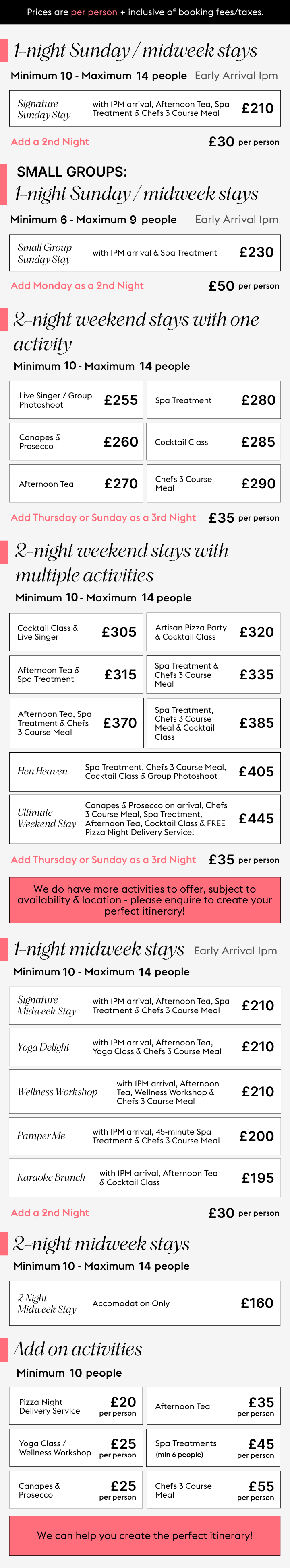 Share your thoughts, and we’ll refine everything until it feels just right - including bespoke activity combinations and updated quotes.