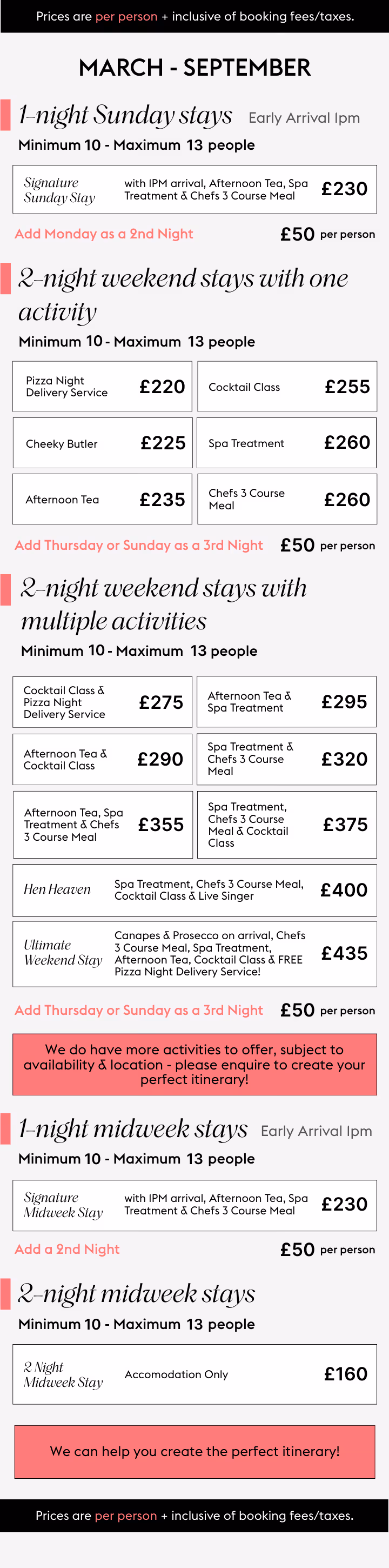 Share your thoughts, and we’ll refine everything until it feels just right - including bespoke activity combinations and updated quotes.