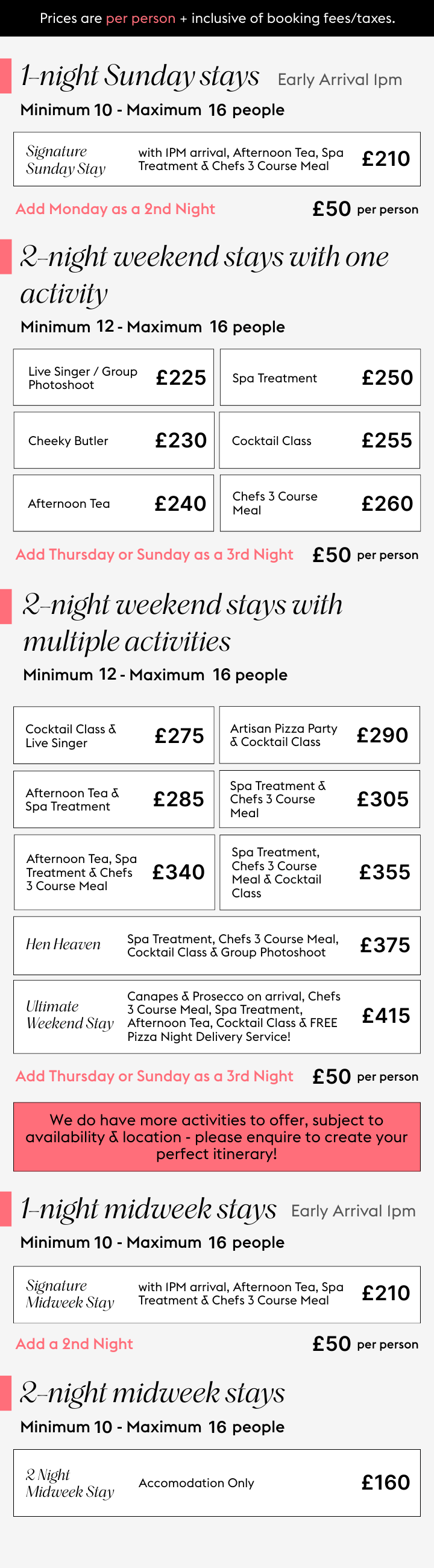 Fancy a chat? Our friendly hen party team would love to help bring your plans to life.