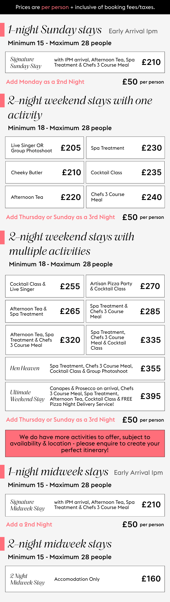 Share your thoughts, and we’ll refine everything until it feels just right - including bespoke activity combinations and updated quotes.