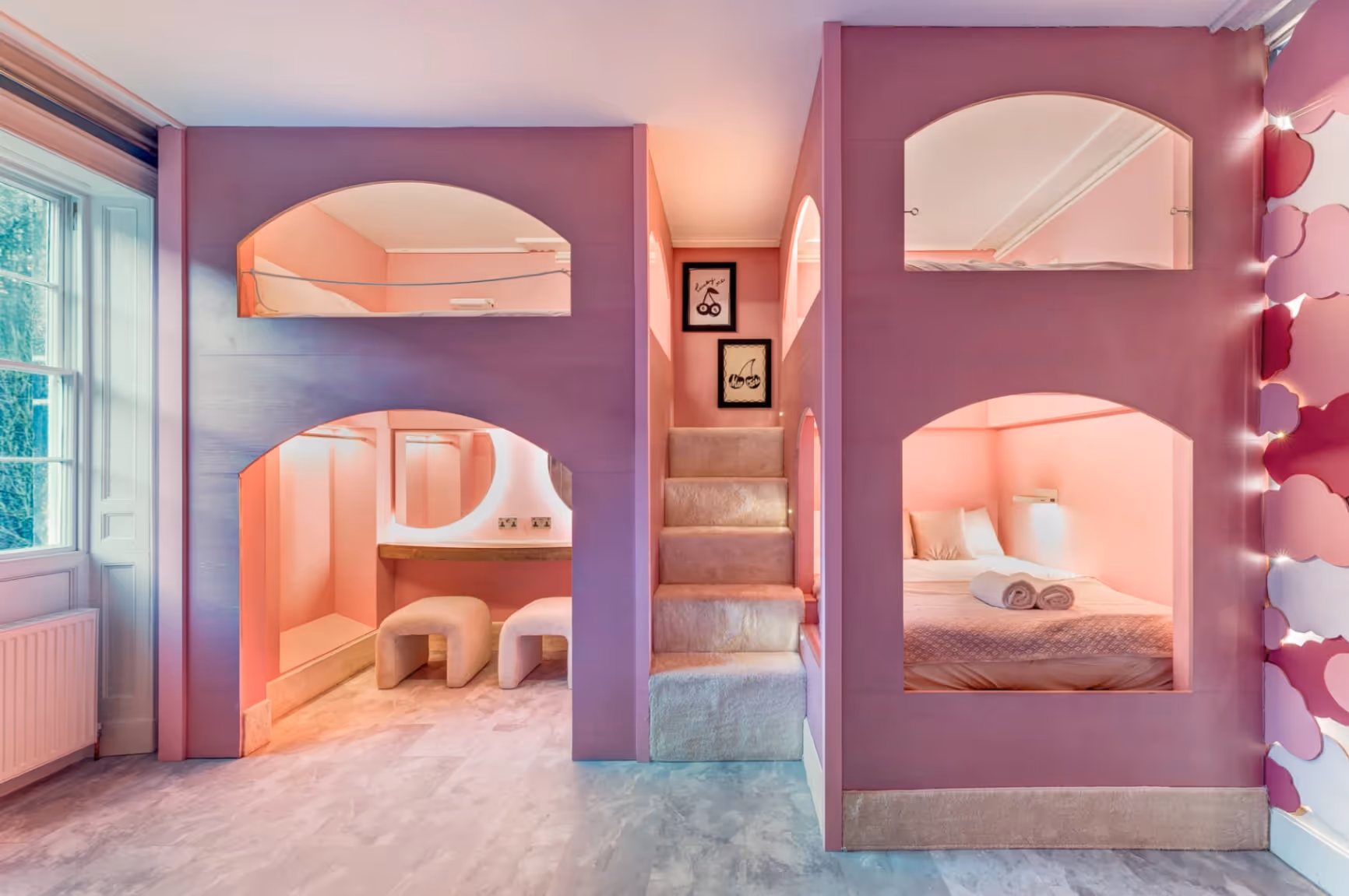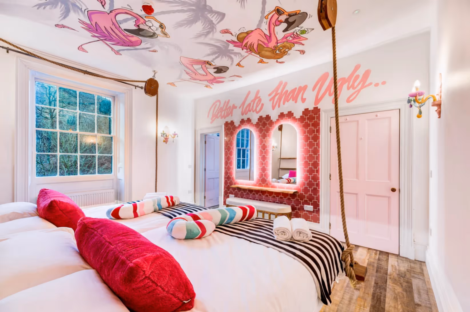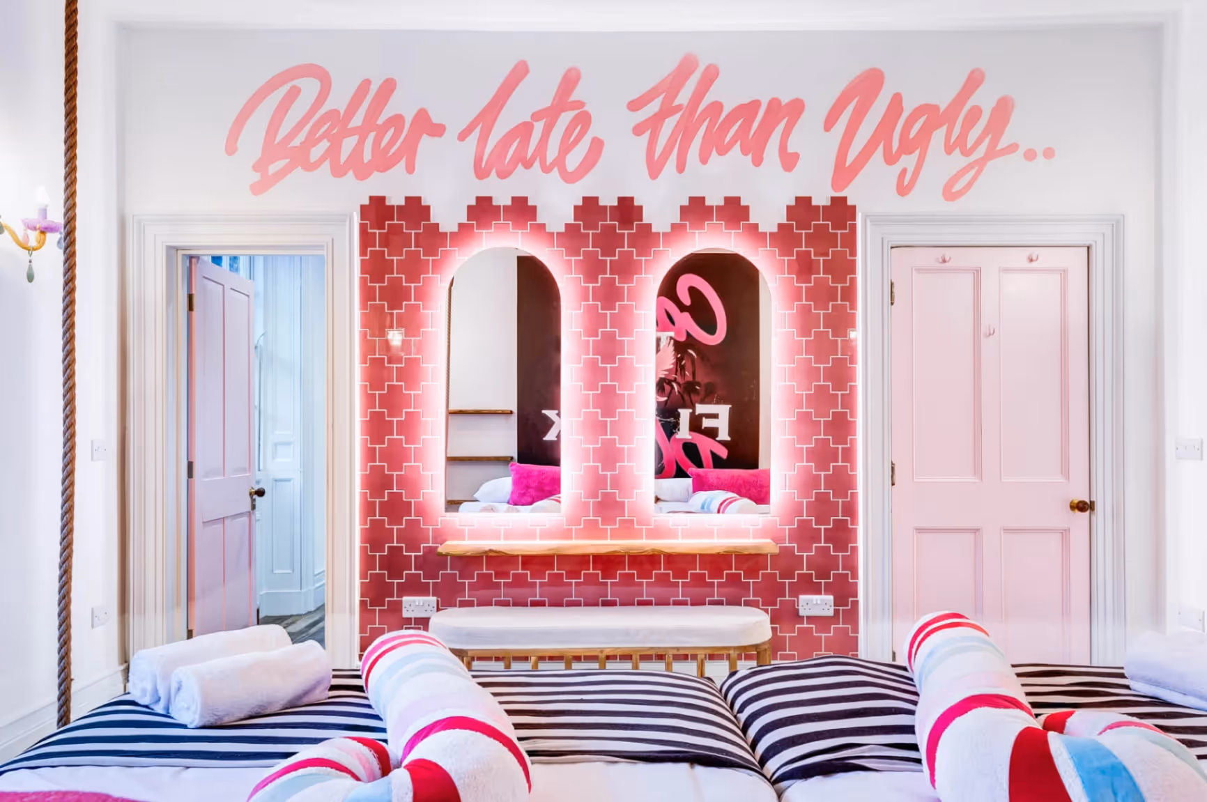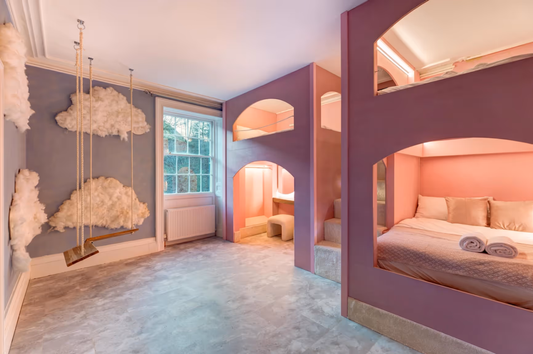 The bride to be, including her bridesmaids (6 in total) went in the pink, clouds room with the swings.