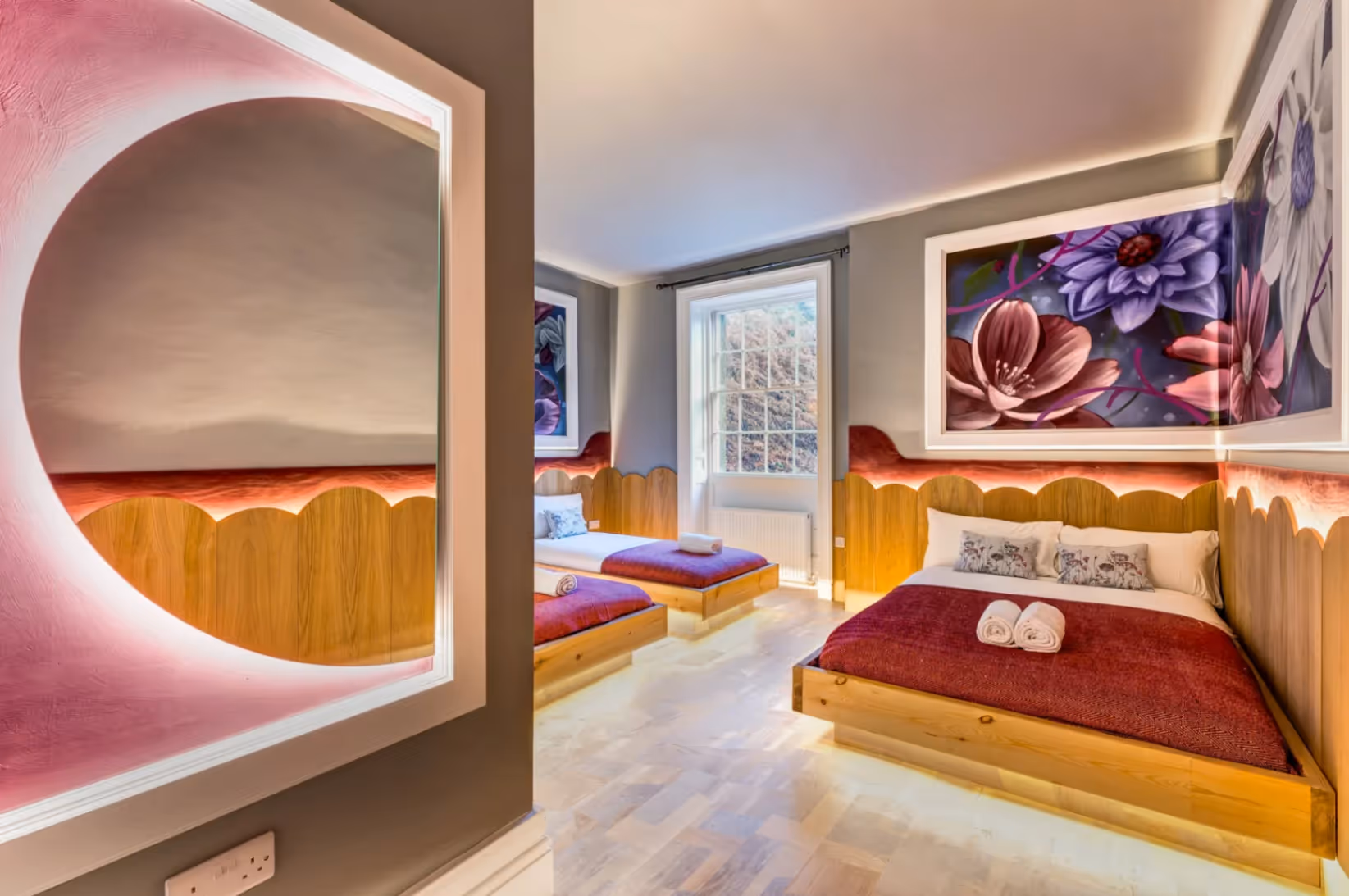Bedroom 5 (GREEN ROOM WITH LEAVES) - 4 x Double Beds (sleeps 8) with ensuite