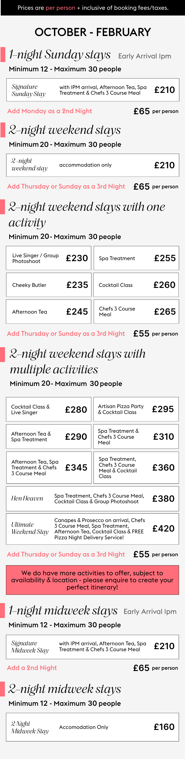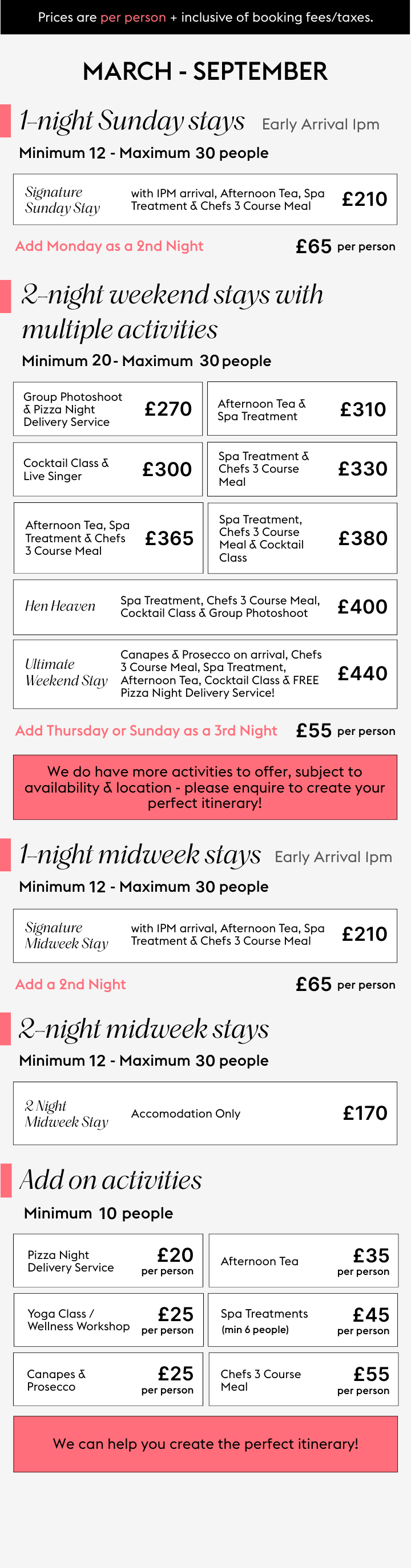 Share your thoughts, and we’ll refine everything until it feels just right - including bespoke activity combinations and updated quotes.