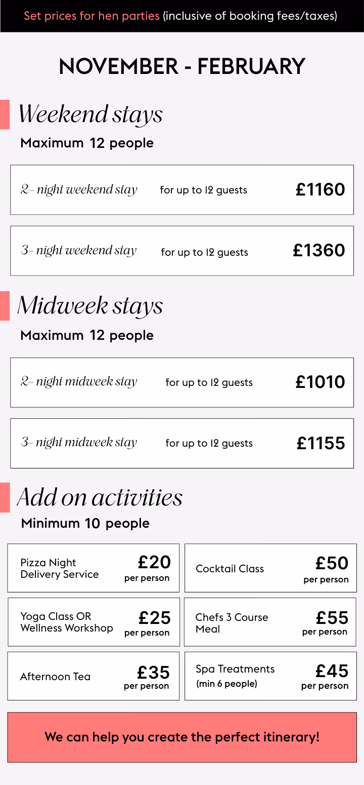 Fancy a chat? Our friendly hen party team would love to help bring your plans to life.