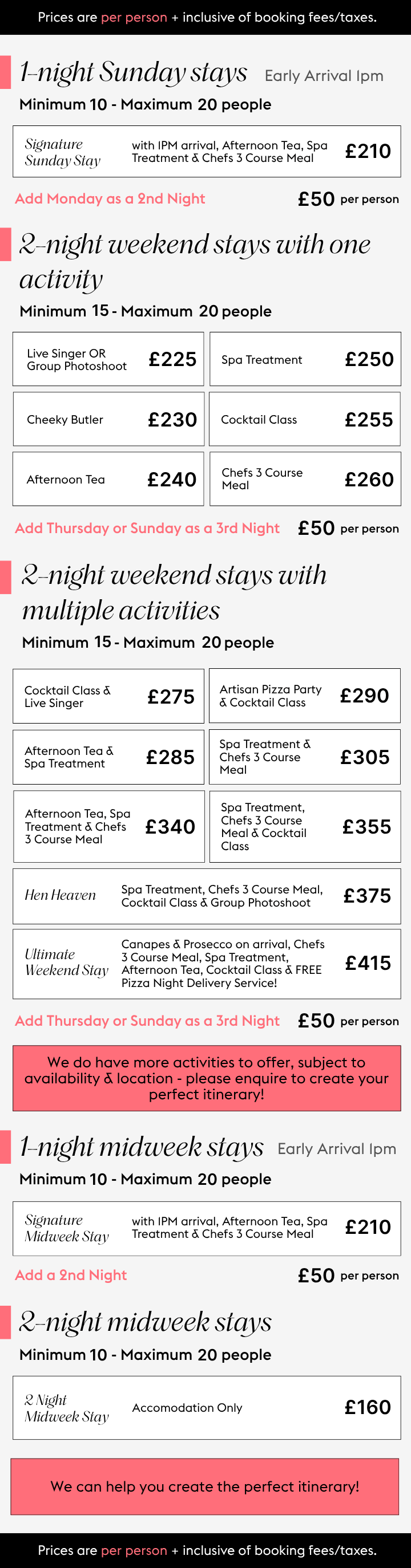 Share your thoughts, and we’ll refine everything until it feels just right - including bespoke activity combinations and updated quotes.