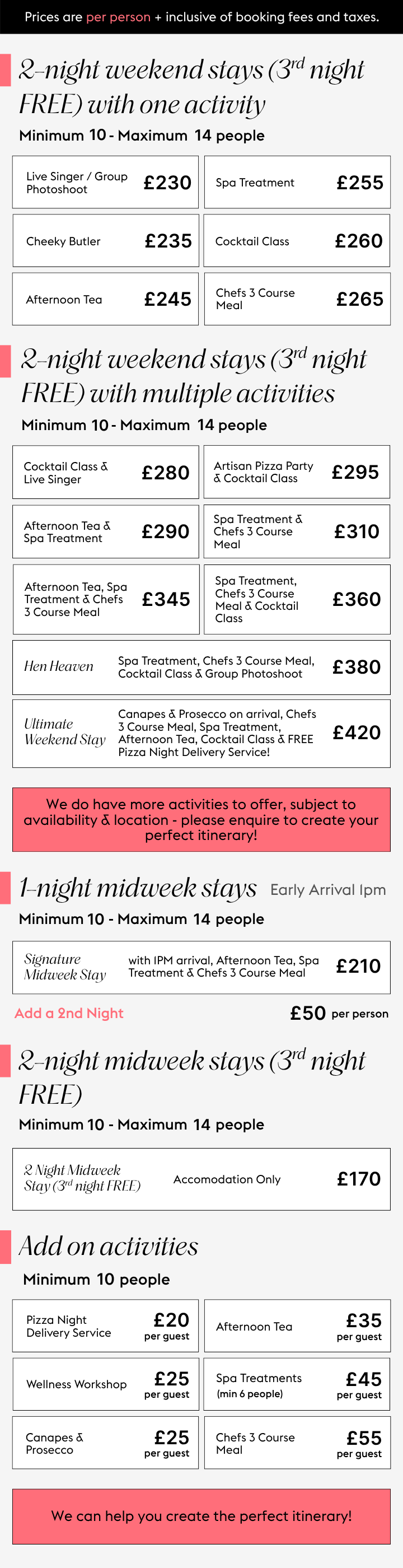 Share your thoughts, and we’ll refine everything until it feels just right - including bespoke activity combinations and updated quotes.