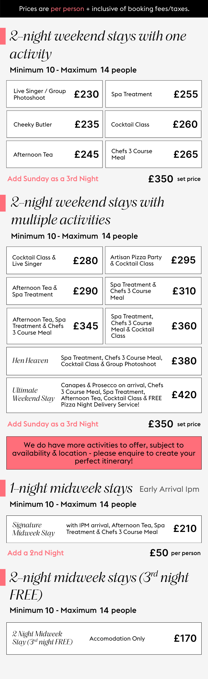 Fancy a chat? Our friendly hen party team would love to help bring your plans to life.