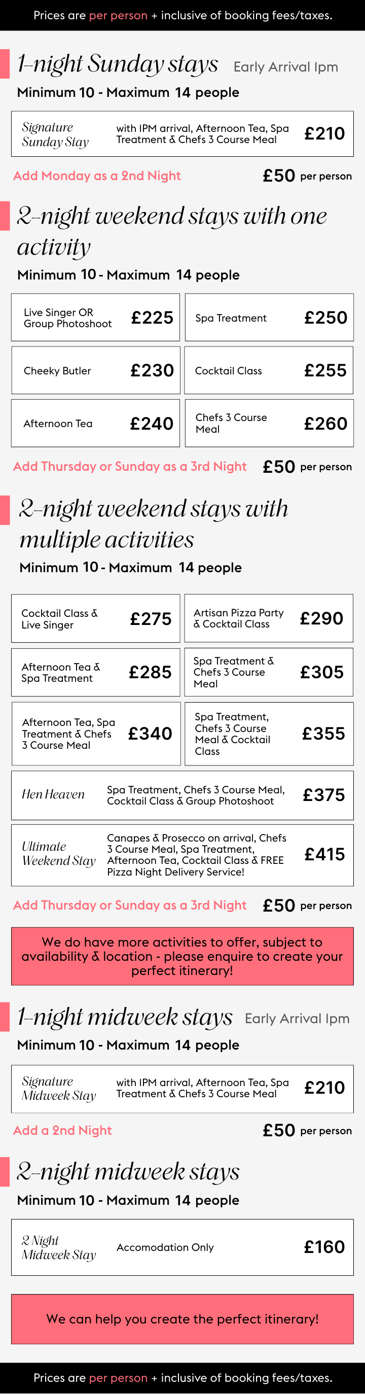 Fancy a chat? Our friendly hen party team would love to help bring your plans to life.