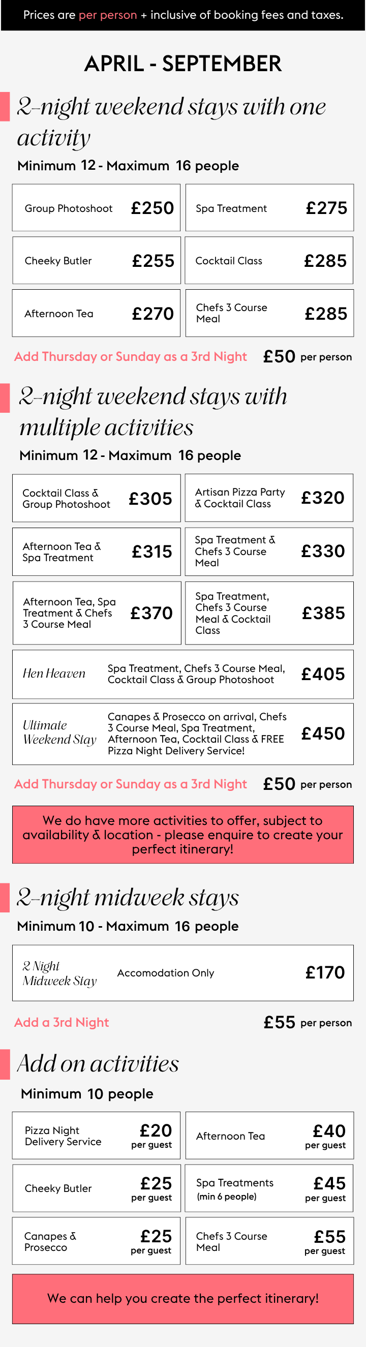 Fancy a chat? Our friendly hen party team would love to help bring your plans to life.
