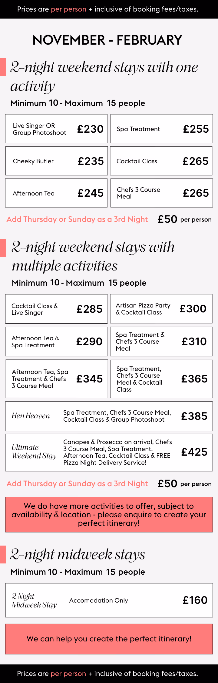 Share your thoughts, and we’ll refine everything until it feels just right - including bespoke activity combinations and updated quotes.