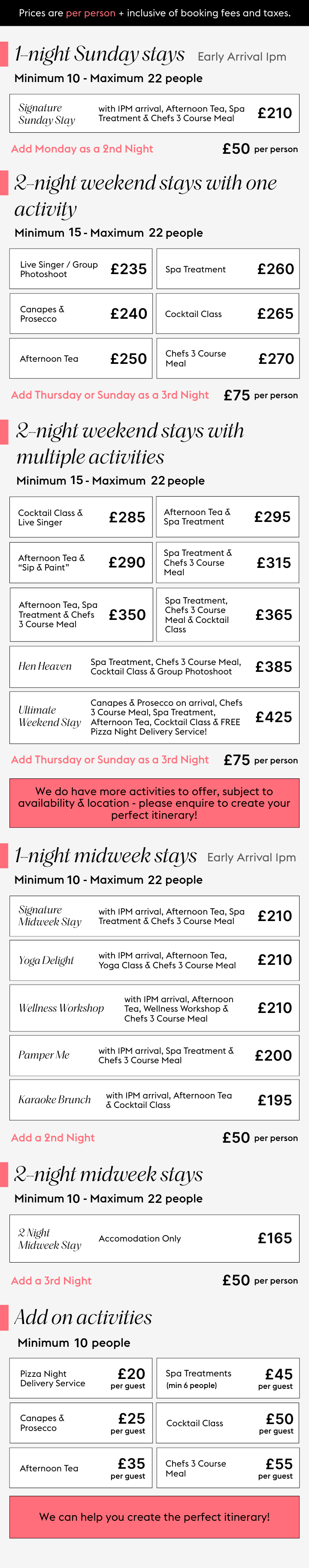 Share your thoughts, and we’ll refine everything until it feels just right - including bespoke activity combinations and updated quotes.