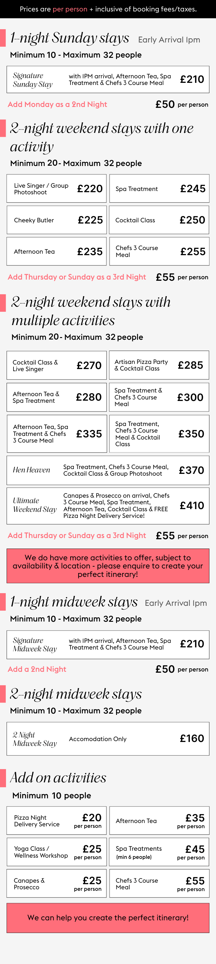 Share your thoughts, and we’ll refine everything until it feels just right - including bespoke activity combinations and updated quotes.