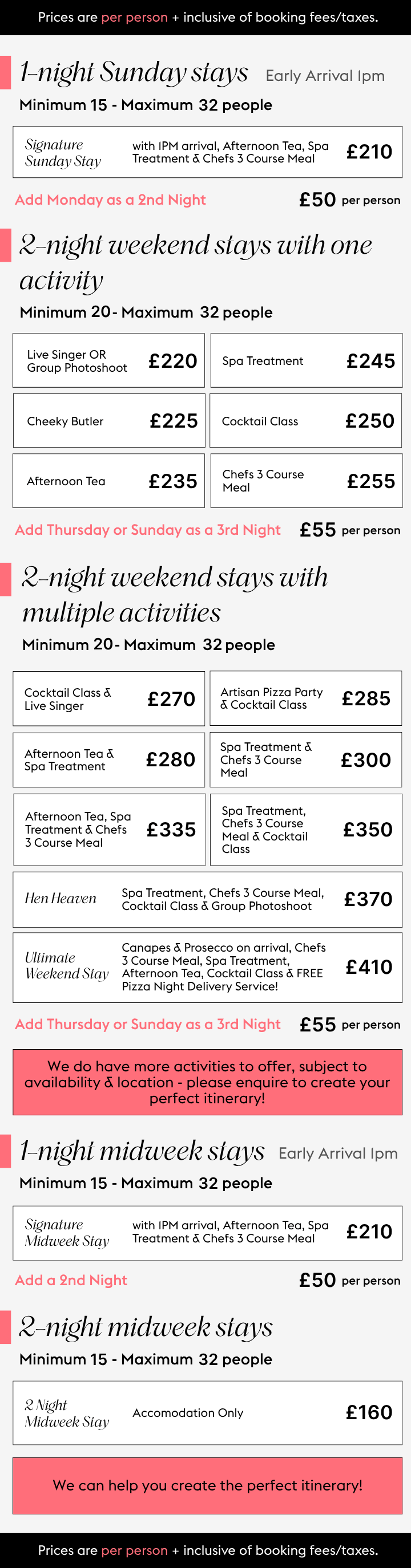 Fancy a chat? Our friendly hen party team would love to help bring your plans to life.