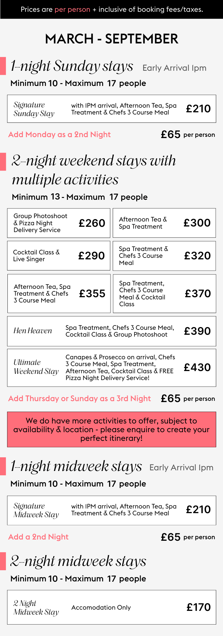 Your Sales & Celebration Consultant will come back to you with approx. 3 tailored property options with recommended activities that suit your group and celebration style.
