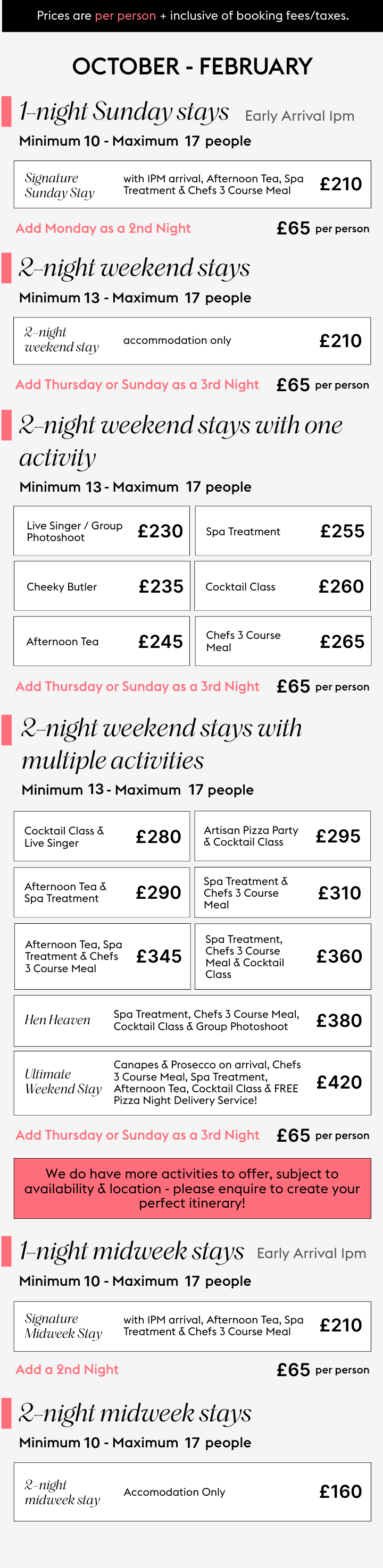 Fancy a chat? Our friendly hen party team would love to help bring your plans to life.